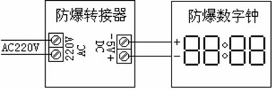 1. 防爆轉(zhuǎn)接器接在防爆數(shù)字鐘和交流電源之間。
