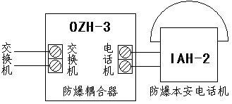 OZH—3型防爆本安電話機耦合器接在電話交換機(或其它調(diào)度電話交換機)和防爆本安電話機之間,是本安型防爆電話機的關(guān)聯(lián)設(shè)備。該耦合器可以同所有類型的本安型防爆電話機配套使用。