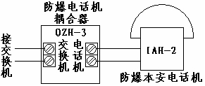 1. 防爆電話機(jī)耦合器接在電話交換機(jī)和防爆本安電話機(jī)之間,最好把防爆耦合器放在安全區(qū)。